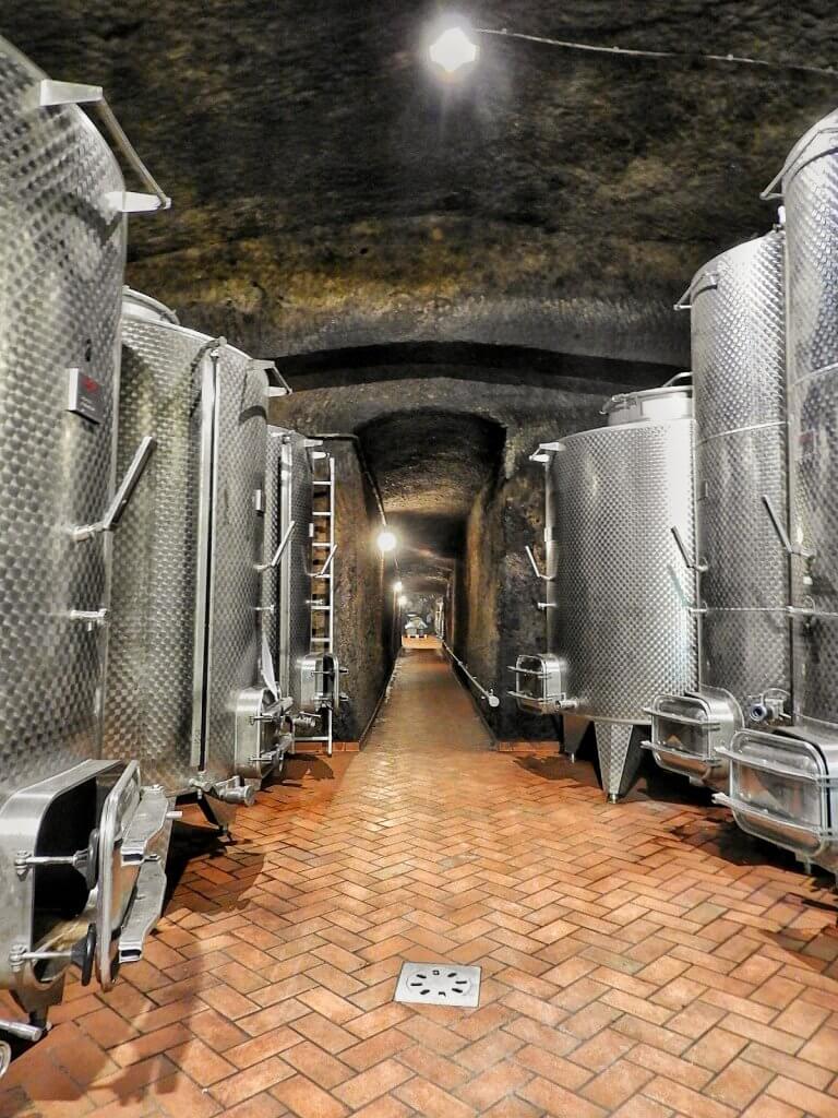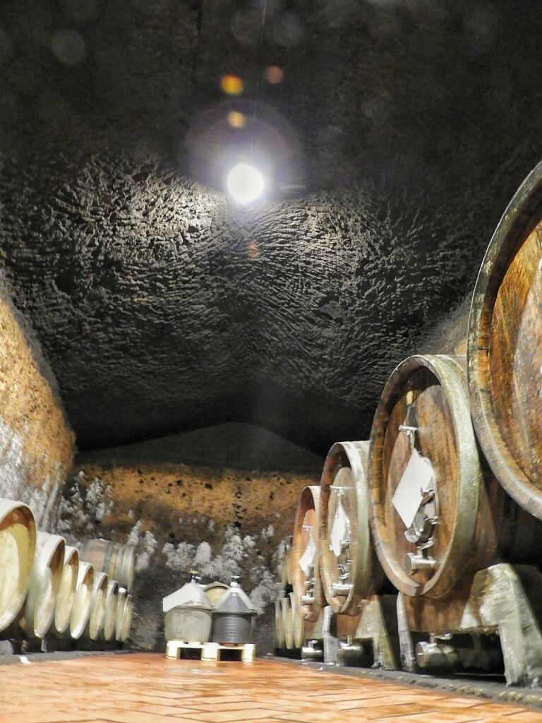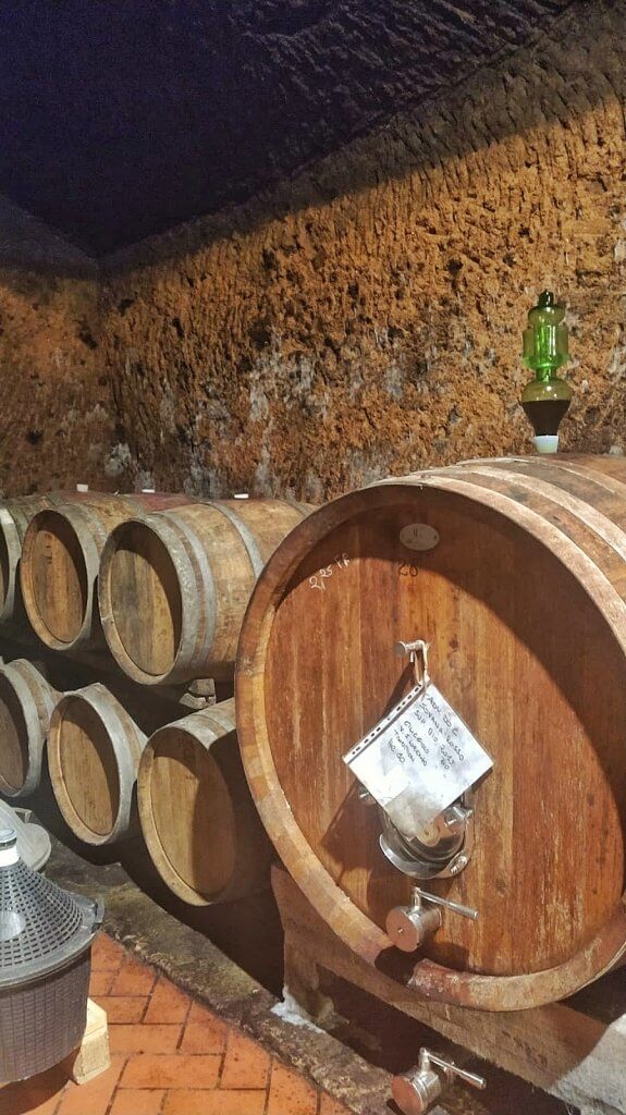 Ristrutturata da Edoardo e Carla nel 1997, ora è il rifugio in cui si trovano contenitori in acciaio, giare in terracotta di Impruneta e botti di legno di varie dimensioni di cui alcune nell’ultima stanza, nella parte più profonda della cantina, raggiungibile dopo un lungo corridoio anch’esso scavato nel tufo.