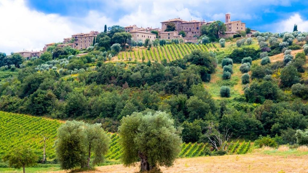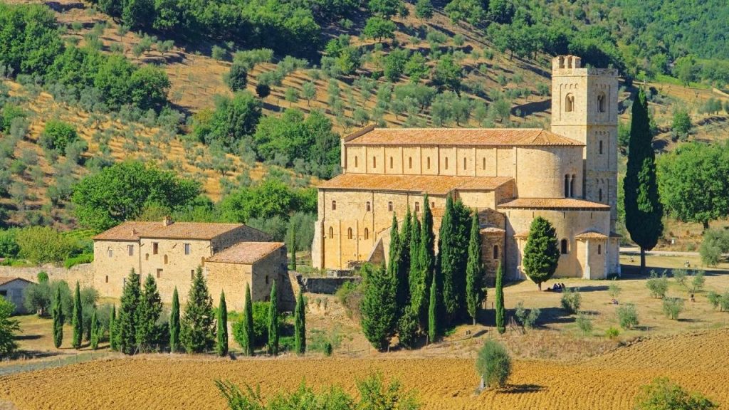 Castelnuovo dell’Abate è un piccolo insediamento situato a circa 389 metri sul livello del mare nel comune di Montalcino, in Val d’Orcia. Questo borgo conserva integro il suo aspetto medievale. Il paese domina dall’alto di un colle la famosa abbazia di Sant’Antimo e si trova immerso in una bella campagna con colline ricoperte di olivi, viti e cipressi.