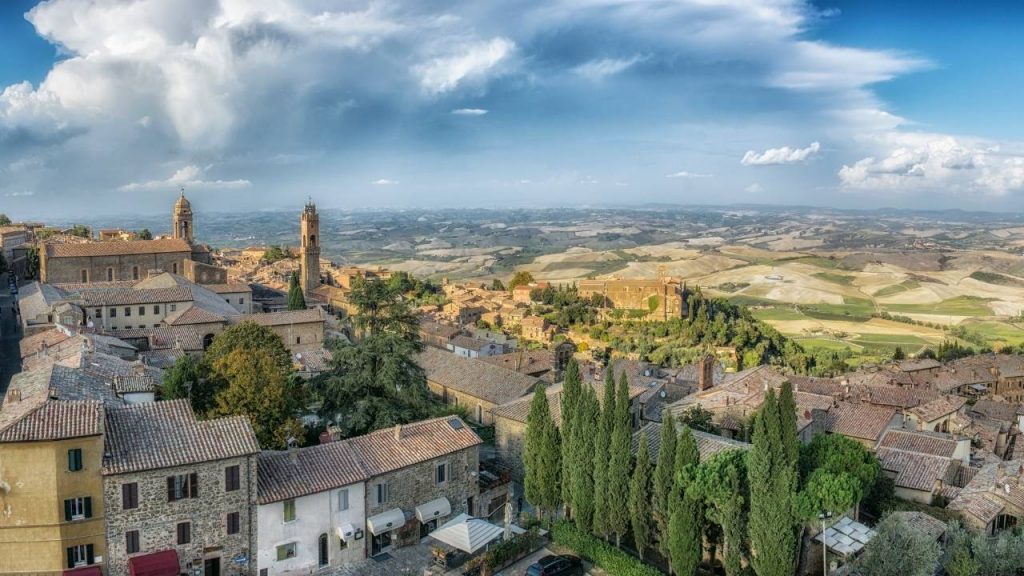 Montalcino si trova a circa 600 metri slm e si affaccia su una vallata mozzafiato, la Val d’Orcia, ed è caratterizzato dalla possente fortezza trecentesca ed il palazzo comunale del XIII secolo.
